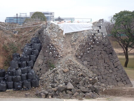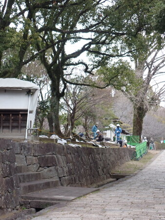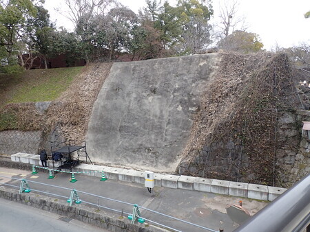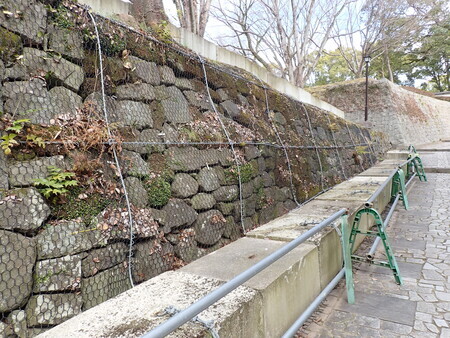 護国神社と二の丸を結ぶ橋の横の石垣崩落は吹きつけで処置されているのかな。