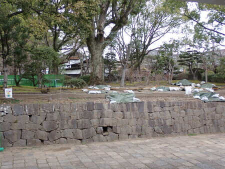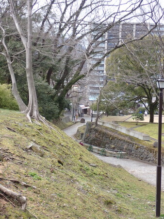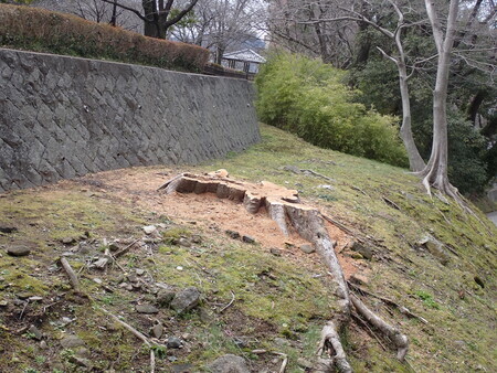 三の丸の木々。なんか、石垣に食い込んでる木がけっこうあるな。伐採対象になりそうだけど。