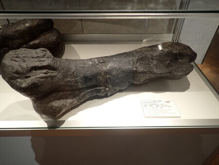 ハドロサウルス類の大腿骨。歯とか、骨片はともかく、ここまででかいのはすごいなあ。今回の目玉。
