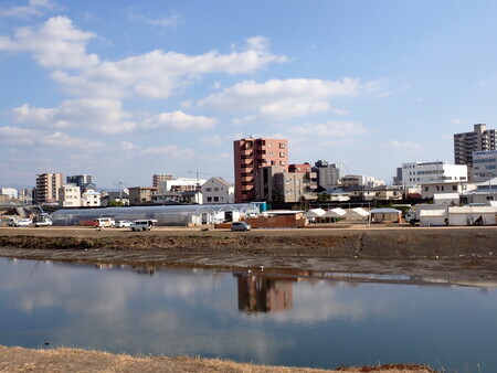 白川の遊歩道を走る。前行った時は増水直後で、泥の海に突入して酷い目にあったけど、今回はきれいに路面が現れていた。ここ通るのは、冬の渇水期が安全かも。そういえば、カモメがあちこちにいたな。