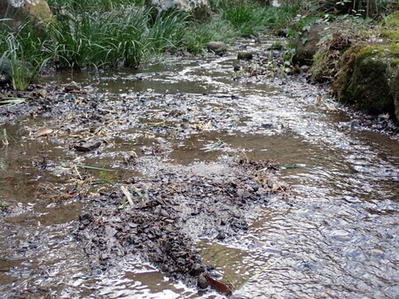 谷の南側の湧水より、湧水量が多い感じかなあ。すぐ先の崖から湧き出しているようだけど。