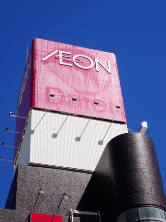 建て替えの話が出ている旧ダイエー熊本店、現イオン熊本中央店を撮影。広告塔、ダイエーのマークが薄らと浮き出ている姿も、なくなるのか。