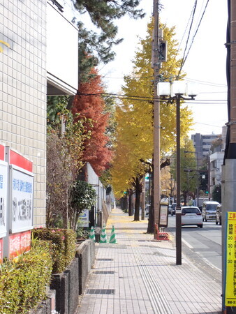 中央消防署横から南側を。イチョウ、場所によっては紅葉が遅いな。