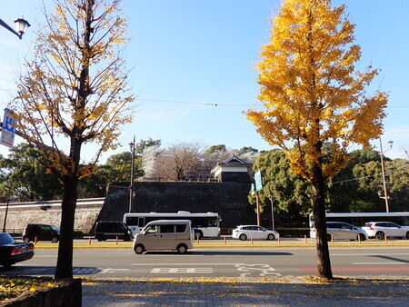 通町筋から見て、天守閣手前で足場が組まれているけど、七間櫓や四間櫓の修復工事なのかな。