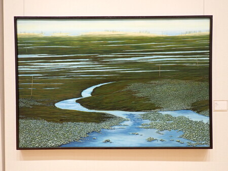 熊本大学のアートバンクに寄贈・帰宅された作品を、まとめて展示紹介する企画展の3回目。どっか、「熊本の洋画家の系譜」みたいなことが書いてあったけど、その通りに油彩作品がメイン。
