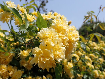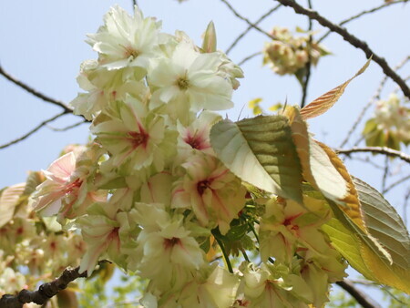 御衣黄。今回の主目的。もう散っているかと思ったら、まだ頑張っていた。時間が経って、中心部が赤くなっている花が多いけど、まだ、開いたばかりの花もけっこうある。