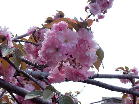 品種不明の八重桜。けっこう、まだ頑張っている。