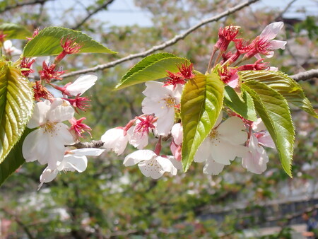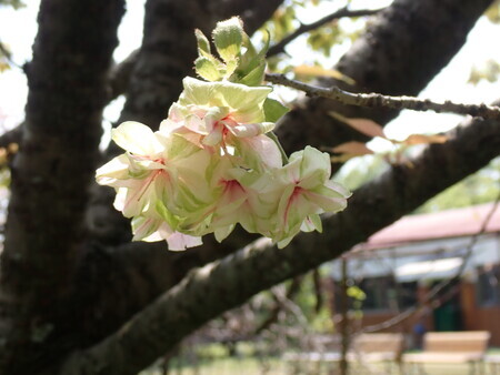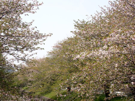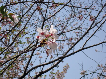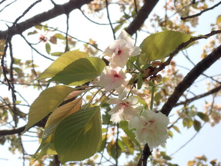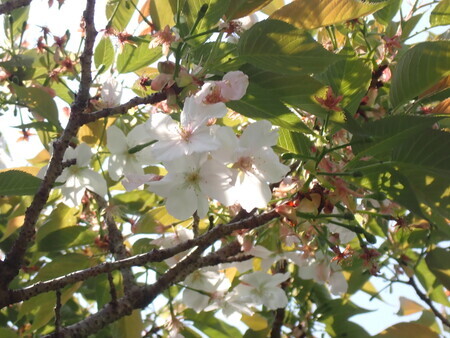 ソメイヨシノ、あらかた散って、葉桜になっているけど、枝単位ではまだ頑張っているものも。