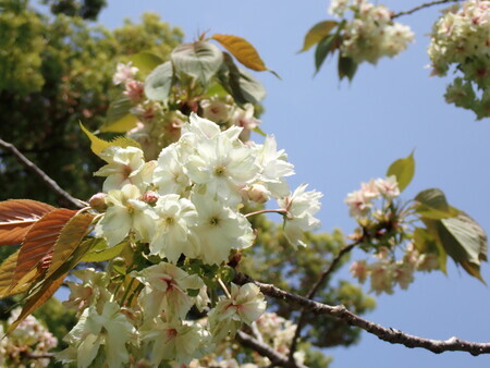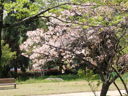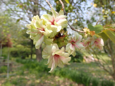 桜の盛りのタイミングで年度替わりの休園だった監物台樹木園が開園したので、御衣黄などの遅咲きの桜が、まだ咲いているかもということで、延長戦に出撃。遅咲きの桜は、まだ、割とみられる。