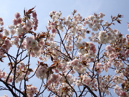 法明寺桜。これは、今が満開。八重咲きの桜は、けっこう遅いのが多いのかな。