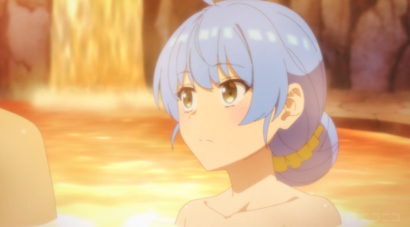 その後は温泉回。ウェブ連載ではスキップしたの、アニメではがちで混浴させるんか。ユークが目隠ししての入浴って、だいぶ上級プレイだなあ。しかも、マリナとネネを体よく追い出して、レインとシルクで独占。