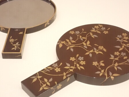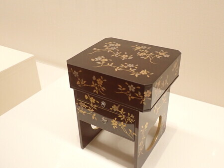 「桜折枝蒔絵鬢台」。整髪料などの鬢道具を乗せる台らしい。