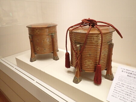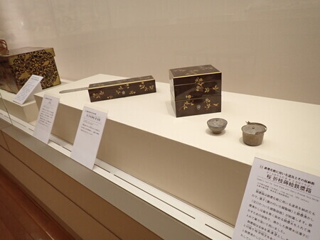 「梨子地違鷹羽紋桐唐草蒔絵行器」。浅野家から細川家に嫁いだ益姫の婚礼調度。食べ物を入れて運ぶための旅道具だそうな。