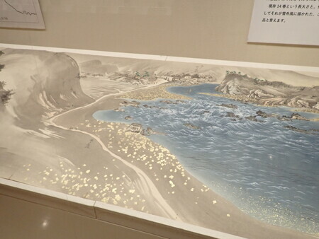 「領内名勝図巻:球磨川筋」。矢野良勝に描かせた領内風景の絵巻。今回描かれたのは球磨川。神瀬岩屋が大きく描かれているけど、国名勝なのね。写真を見ると、なるほどこの絵みたいな感じだな、と。