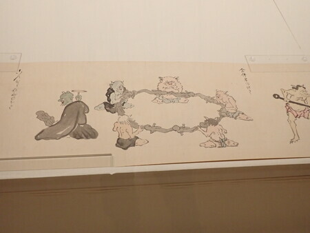 今回は「今西コレクションの浮世絵」ということで、今西菊松が蒐集した浮世絵を展示。サラリーマンで収入が限られていた中で、当時比較的安く取引されていた肉筆画をメインに蒐集。結果として、肉筆浮世絵の一大コレクションができあがったという。「美人画」「歌舞伎役者の姿」「戯画や動物たち」「さまざまな画題:風景、歴史上の人物、神々など」と分けて展示。