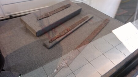 鉄刀。古墳時代後期の上神内横穴墓群から出土した鉄刀。鉄製品の保存には、結構気を遣いそうだな。