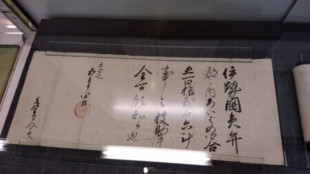 知行宛行状。豊臣秀吉が、水野才助に伊勢国員弁郡あいばの郷に知行をあてがった朱印状。その後、肥後で書家になっているとか、どういう系統なんだろう。秀吉の直臣がどういう経緯で肥後藩士となったのやら。