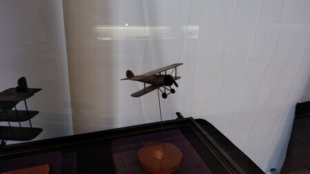 津森神宮所蔵、模型航空機群。左から一〇式艦上戦闘機一型、一〇式艦上雷撃機、一〇式艦上戦闘機二型(練習機型)。